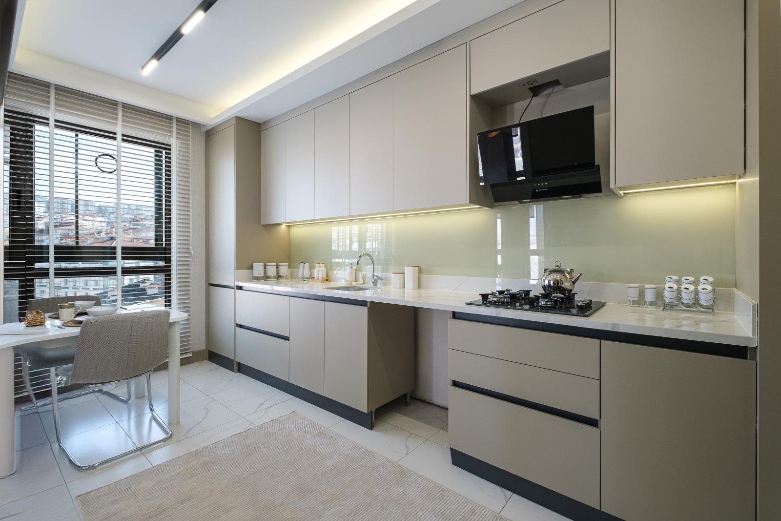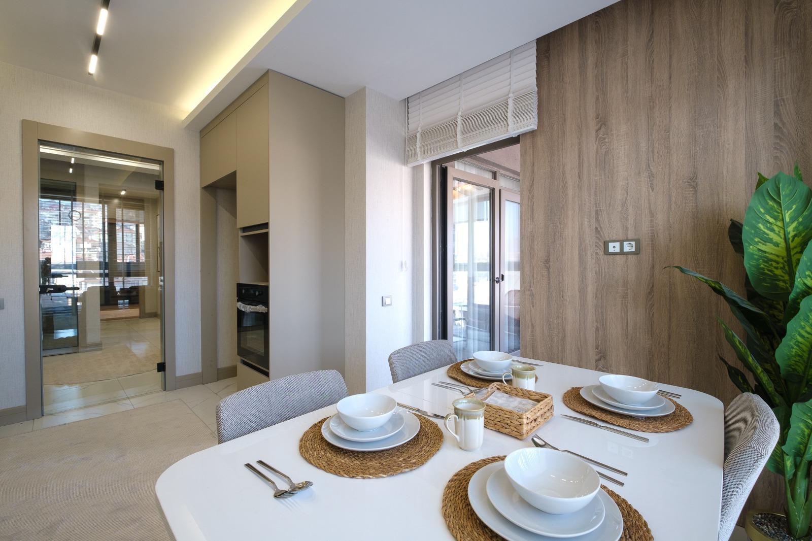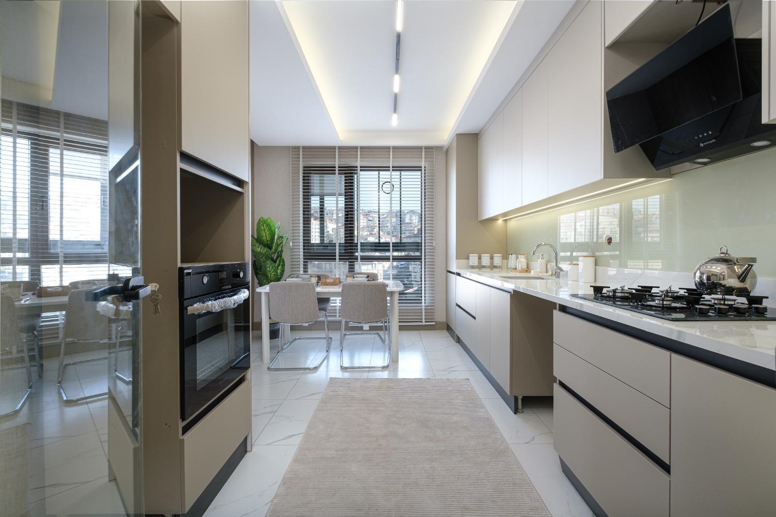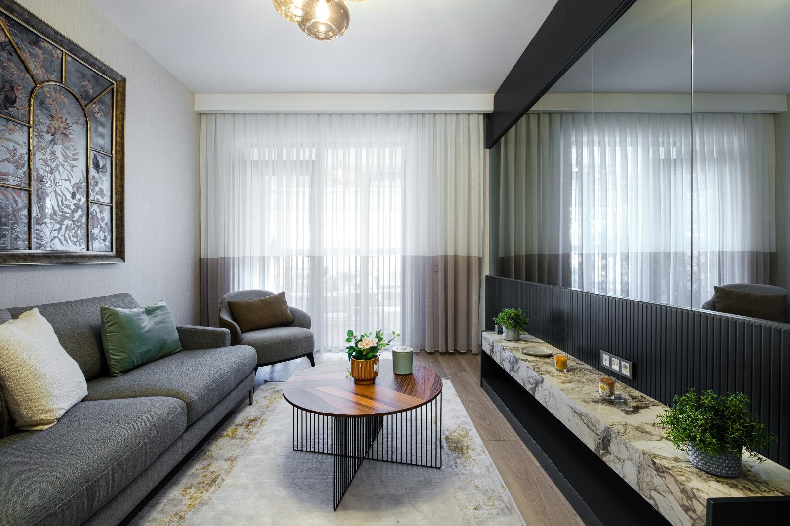 İç mimar tarafından özenle tasarlanmış daireler, özel tasarım LED aydınlatmalar ve modern alçıpan tavan detaylarıyla estetik ve fonksiyonelliği bir araya getiriyor. Kaliteli malzemeler ve modern tasarım anlayışıyla her detay düşünülmüş.